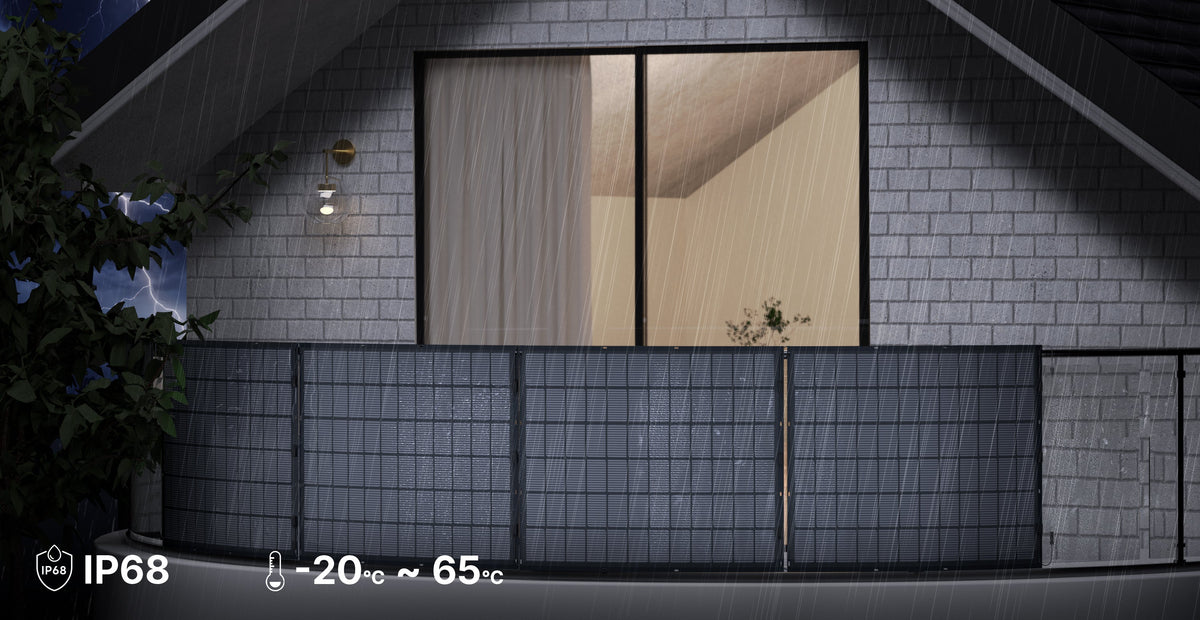 Flexibele zonnepanelen maken optimaal gebruik van de balkonruimte met 2 x 225W zonnepanelen om elektriciteit te genereren. De omrekeningsgraad is tot 25%, wat het zeer geschikt maakt voor thuisgebruik en onverwachte stroomuitval.
